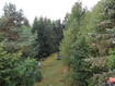 Waldgarten mit Trampolin, Schaukel, Rutsche, Fußballtor und Feuerstelle.