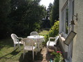 Sitzplatz direkt vor dem Ferienappartment mit schöner Morgensonne bis in den Abend.